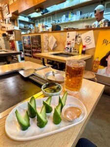 浜松町駅前、2012年創業のお葱ちゃん。屋号にひかれて入ったら、丁寧な混ぜ焼きの名店でした。きゅうりの切り方からも仕事への愛が感じられます! #okonomiyaki #お好み焼き #東京 #鉄板会議 #食文化
