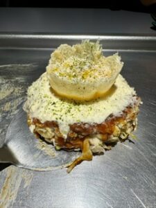 ソウルの弘大(フデ)は昔の情緒を残した素敵な街。注目のお好み焼き店「推し」さんへ。看板の焼きそばを巻いたそばロールやチーズカップのお好み焼など、見せ方も素晴らしく、新しいお好み焼きの時代を感じます! #okonomiyaki #お好み焼き #yakisoba #seoul #korea