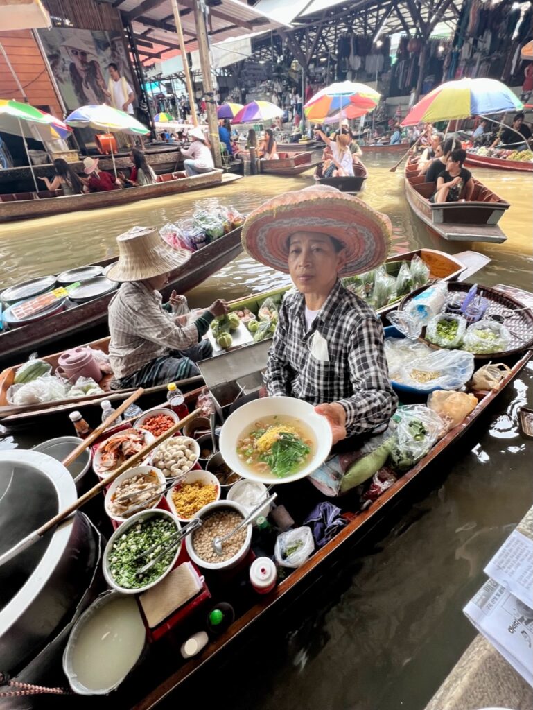 今回のバンコク訪問でショックだったのは、屋台の絶滅危惧で、しかも米粉をココナッツミルクで溶いて焼いたカノンクロックが皆無だった事。バンコクから70kmほど、老舗のダムヌン水上マーケットには2軒残っていたので、嬉しく頂きま