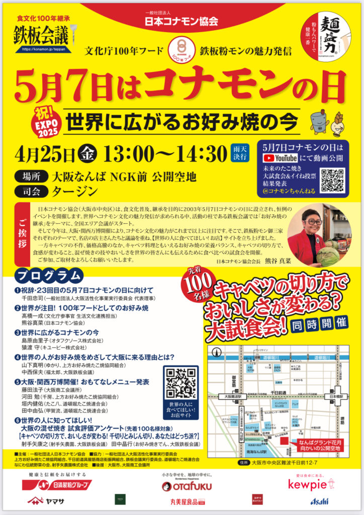 5月7日はコナモンの日プレイベント本日13時〜開催🔴世界の人に知ってほしい!キャベツの切り方でおいしさが変わる!試食会もご参加くださいねー #食文化 #鉄板会議 #万博おもてなし #japankonam