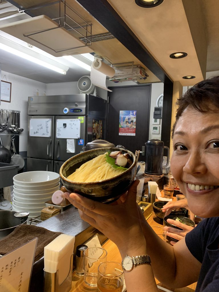 NHK「あさイチ」のリハーサル後、早稲田の巌哲さんへ。 蛸半夏生キャンペーンに合わせて、明石のマダコをつかった麺と、蛸飯を準備されていました。 5時から並んでいると、東京事務所長のお知り合いが続々と来られます。 つけダレ