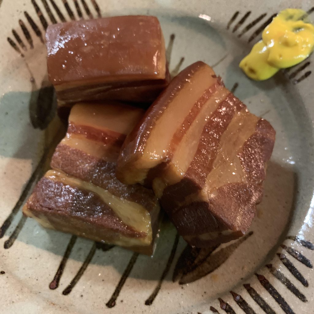 昔からの定番、長崎と福岡のおみやげの代表格! トンポーロ―の角がこんなにきちっとしてるなんて、びっくりです。 ご飯にもお酒にもあいますね。