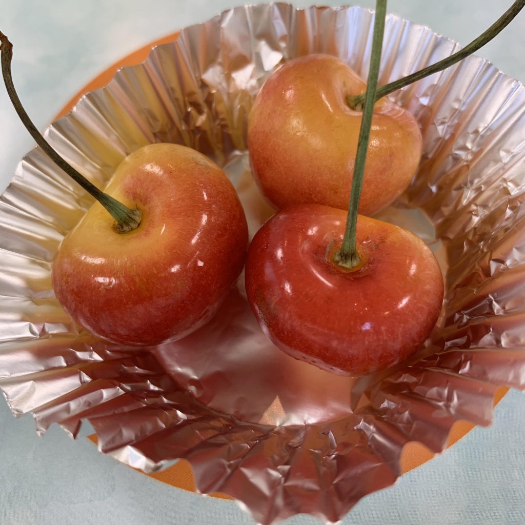会議のおやつは嬉しいものですが、なんとレイニアのさくらんぼが出てくるとは・・・ 日本産のよさを、アメリカ産が上手にコピーしてます。 肉厚ってところ、アメリカン、3粒で大満足です!