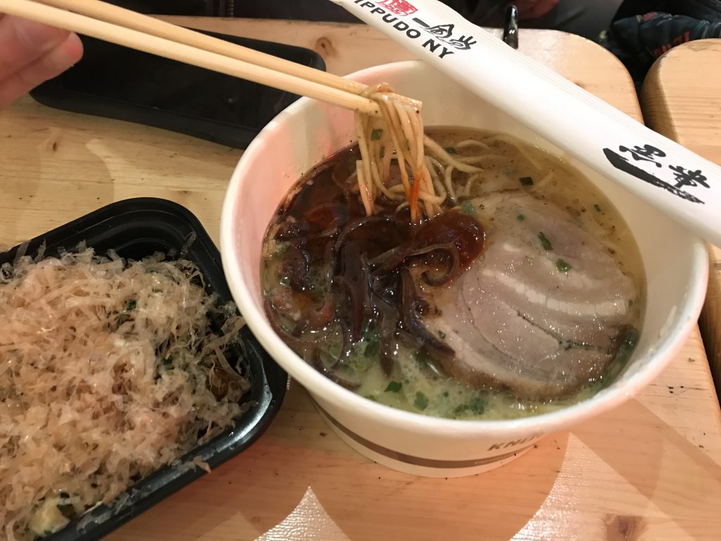マンハッタンのど真ん中にある、日本食スーパーマーケットのKATAGIRIさんは、昼時、たくさんのニューヨーカーが押しかけてランチを買っていきます。 入り口には、おにぎり屋のごんべえさん。3ドル以上のおにぎりと、唐揚げが飛