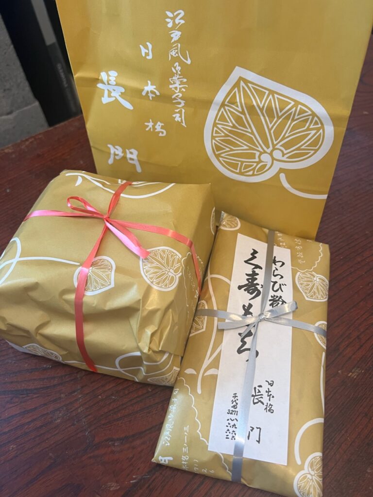 創業400年、日本橋の老舗和菓子店、長門さんの葛餅。蕨粉、黄粉、砂糖、以上。わらび粉100%の本物は、超レア、手土産に最強です‼︎ 大正時代のお菓子番付では横綱の風格。文化を味わえるひと時です! #わらび餅 #わらび粉