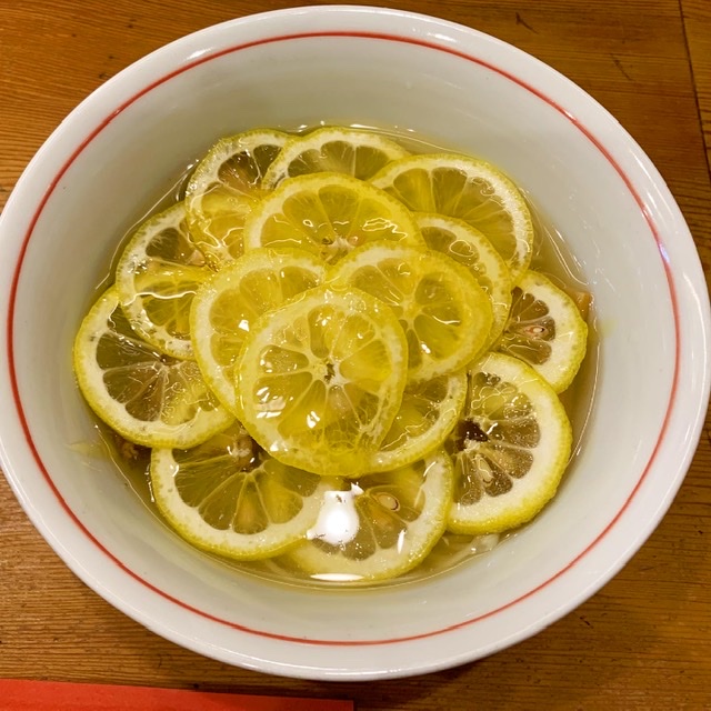 すだち並べはお蕎麦やさんからときいてますが、レモン並べも増えています。 三くさんは、ここに蜂蜜をたら~り。これでレモンも全部いただけるんですよね。 からだに染み渡る煮干しのスープに、しめのお米。 辻田さんの山椒もいい仕事