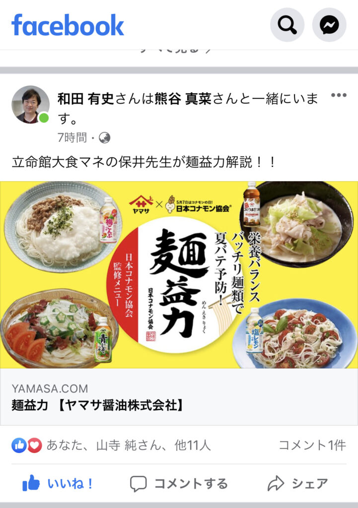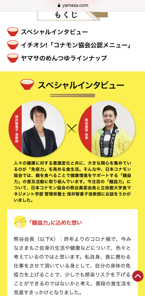 ●協会監修、麺益力麺レシピ https://www.yamasa.com/tsuyu-meneki/ 夏の麺益力、麺類編の日本コナモン協会監修メニューサイトが ヤマサ醤油「なるほど麺益力」サイトにアップされました。