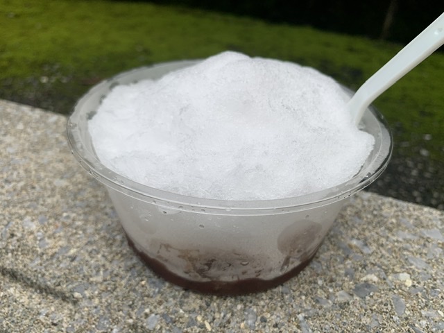 伊是名から今帰仁に戻り、マーケットで商品を見ながら、ぜんざいをいただきました。 こちらは金時豆のぜんざいですが、優しい色と甘さ、香りもよくて、氷と白玉のバランスが最強です。 琉球メダカが売ってるのも、本当は帰りたかったで