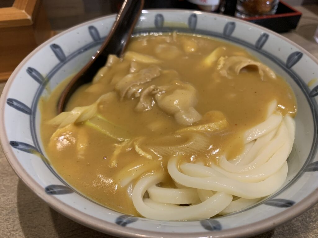鶏だしのカレーうどんと味噌煮込み。煮玉子も丁寧なお仕事でめちゃくちゃおいしい! 幡ヶ谷から大森への移転おめでとうございます! t