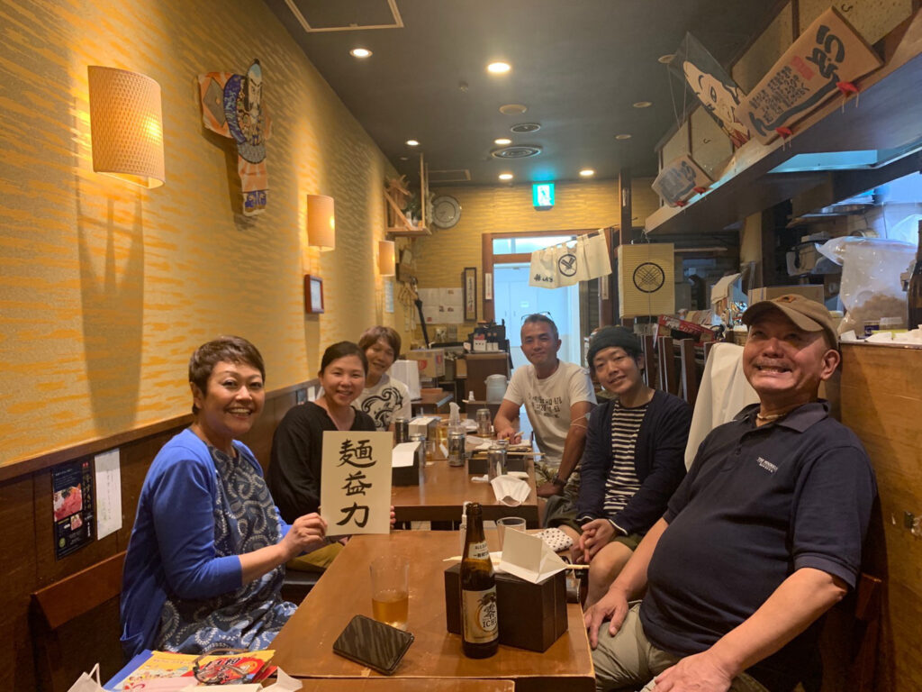 村山うどんエリアに今年初めておじゃましました。 満月うどんさんに到着するとテイクアウトはじめ、開店前からお客さんが待機です。 お店を改装されたのに、協会ポスターやステッカーを貼りなおしていただき、あり