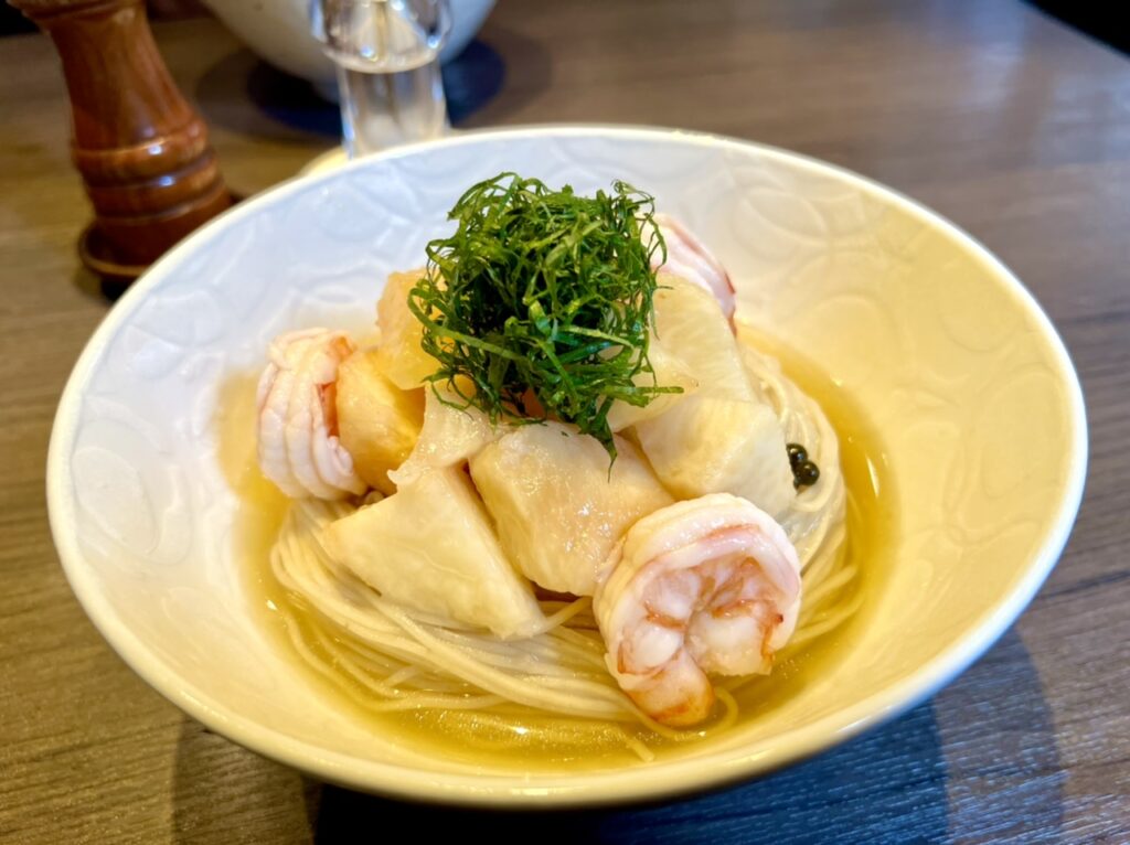 支那そばや本店初入店! 1杯目は四万十ぶしゅかんらぁ麺、2杯目は、白桃の冷やしらぁ麺🍑 毎年これを目当てに通う東京事務所長の絶賛の意味が実食して理解できました。 桃がらぁ麺と出会って、こんな上品にまとまってるなんて感激