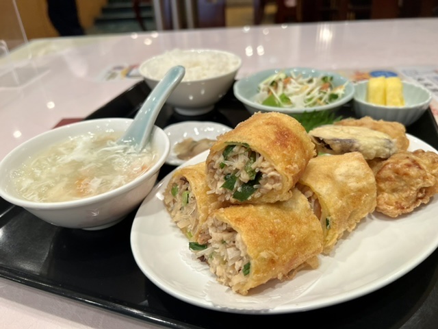 鉄板会議の懇親会の打ち合わせで、大阪の老舗中華、大成閣さんへ。丸かぶりを思わせるような大きな春巻き定食をいただきました。具材たっぷりで皆さん注文されてます。お芋の飴炊きからコーヒーまで手を抜いてないのがすばらしい。 #春