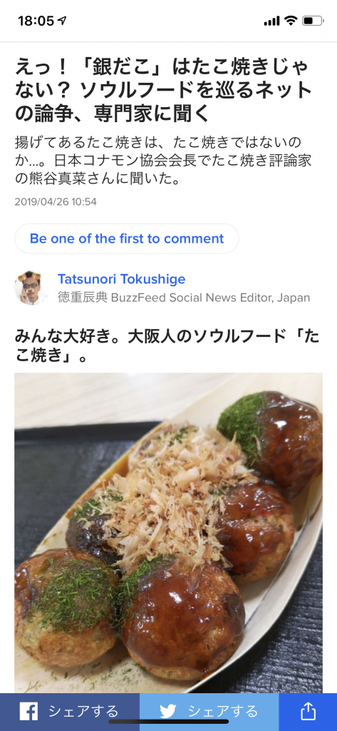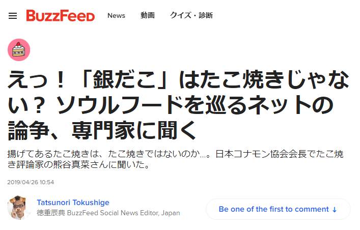ネットでも論争になっている、「銀だこはたこ焼?」について、BuzzFeedさんから取材を受けました。 日本コナモン協会の見解は……。 詳しくは、記事をご覧下さい! えっ!「銀だこ」はたこ焼きじゃない? ソウルフードを巡る