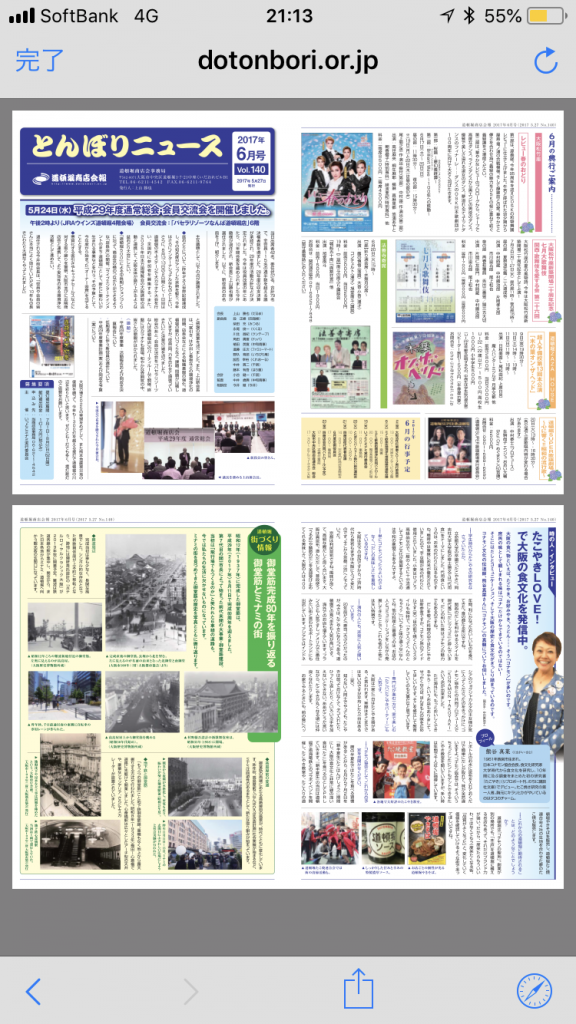 2017年6月の道頓堀商店会の会報が出てきました。 このとき取材してくださった方の御親戚がおはなはんのお好み焼きカップを作っておられると聞いてびっくり。 またいつか取材させていただきたいです。
