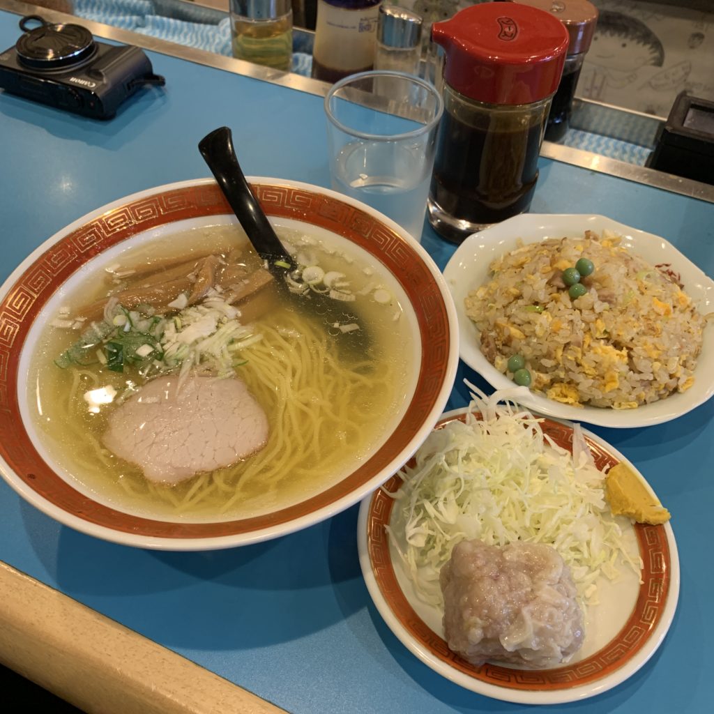 豊洲市場の寿司屋よりも人気の中華屋さん。 女将さんの気配りに触れたくて、毎日通う人もいるようです。 しゅうまいも名物。タンメン、中華そば、半チャーハンもお願いしました。