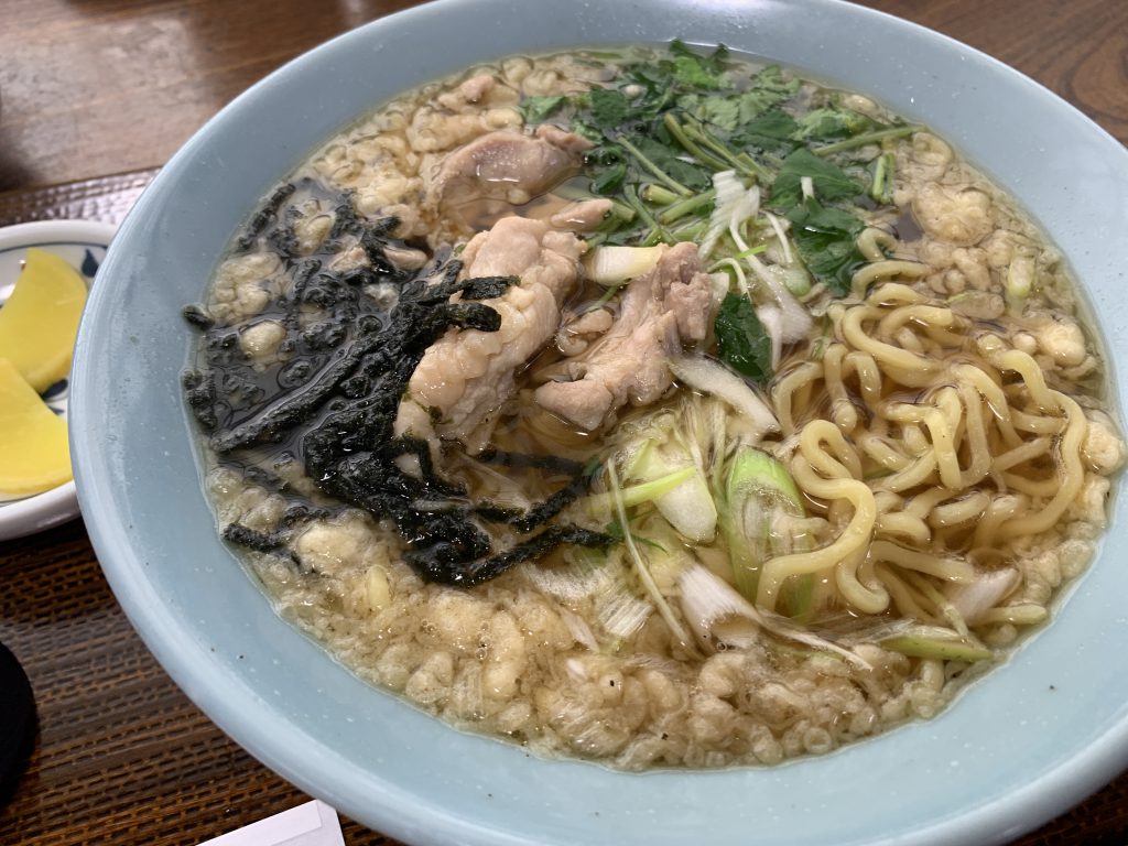天童に来るたびに、いつも立ち寄る蕎麦屋さんです。 系図が表にあるので、こちらの板そば文化はすごいのですが、 お目当ては鳥中華。 鳥のだし、天かすが、和だしにめちぇくちゃ合うんです。 たくあんがついてるところも、食堂のノリ