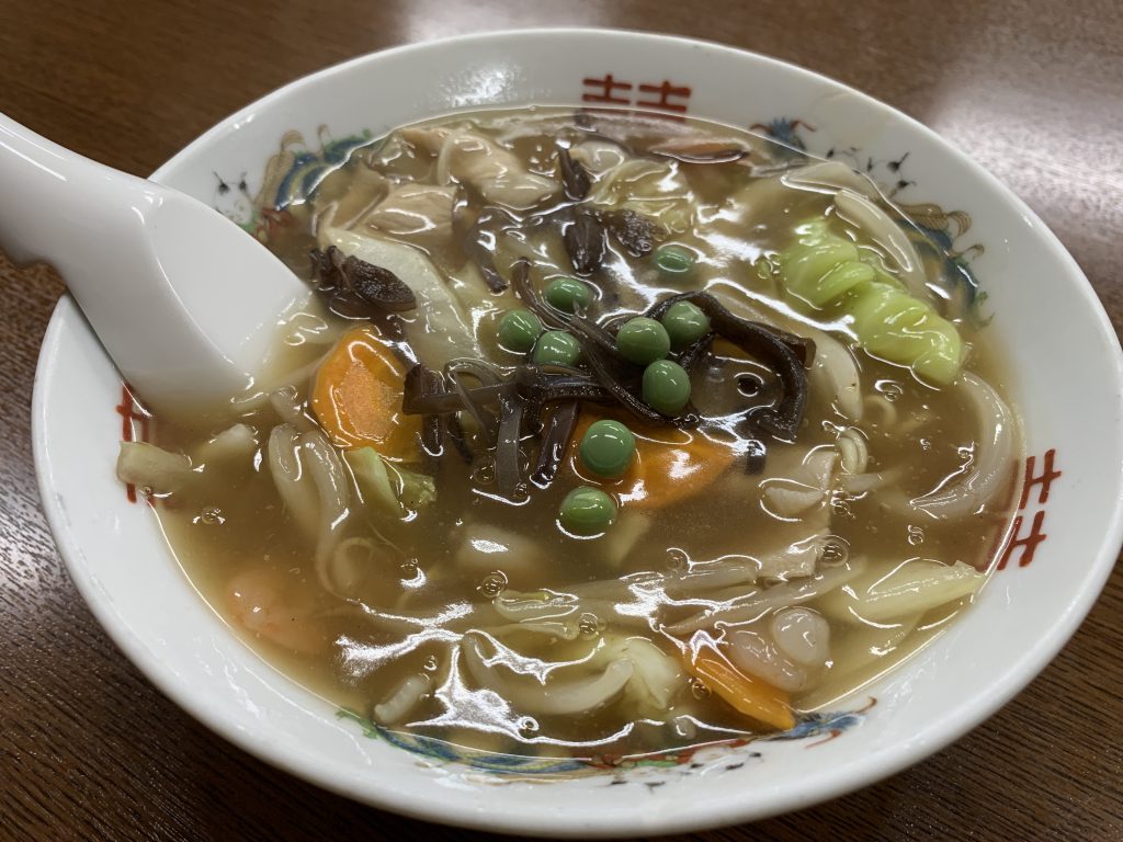 岡町の土手嘉さんへ。 冷やし系を食べるつもりでしたが、最近副会長がちゃんぽんを食べているので、つい選んでびっくり。 具材を炒めて、だしを入れて、とろみがついたものが、細めの中華麺にかけてあります。 長崎ちゃんぽんとはまっ