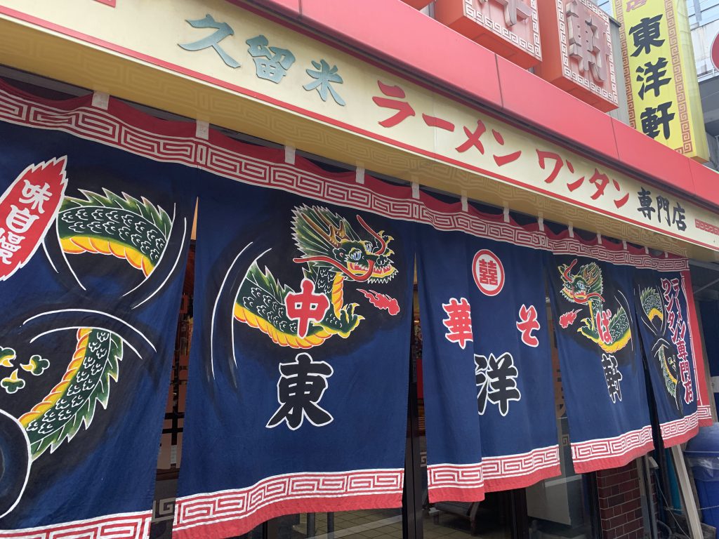 からあげちゃんぽんのお店を目指して、小倉からモノレールに乗りましたが、お店をみつけられず、 代わりに、暖簾が素敵な久留米ラーメンのお店で、ワンタンをいただきました。 とんこつでワンタン、って意外に初めてかも・・と思いなが