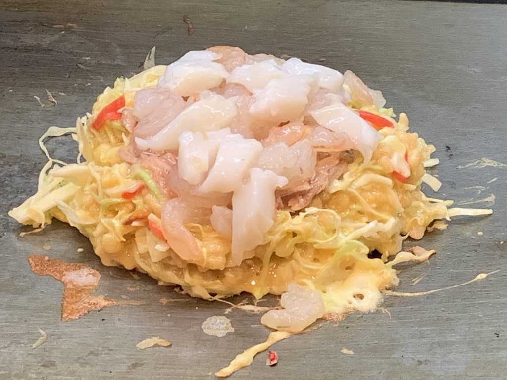 福岡、博多エリアで数店舗あるお好み焼店を訪ねました。 接客のマニュアルがいきわたっていて、お店の雰囲気もよく、一人客から学生さんなど、いろんな世代が常連さんです。 卵あり、なしも選べて、肉玉大きめ というのは豚に卵ぷらす