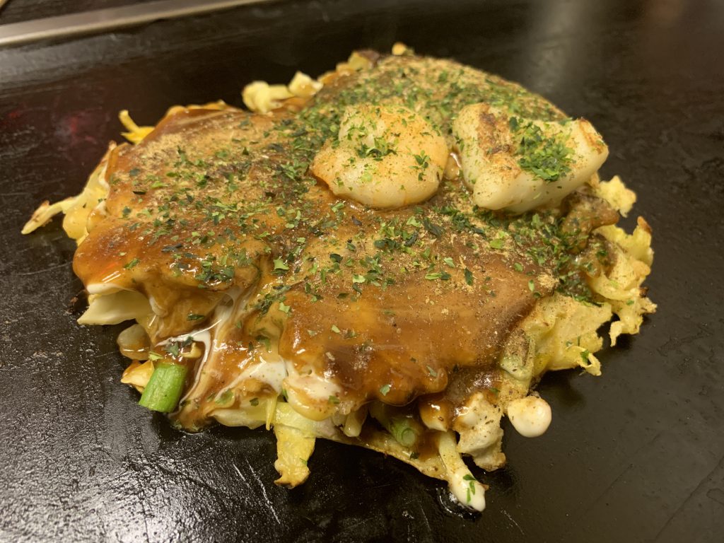 渋谷の交差点のすぐそばのお店。昭和32年から営業しているそうです。 丁寧にやいてもらって、キレイなトッピング。 外に出ると大行列でびっくりしました。