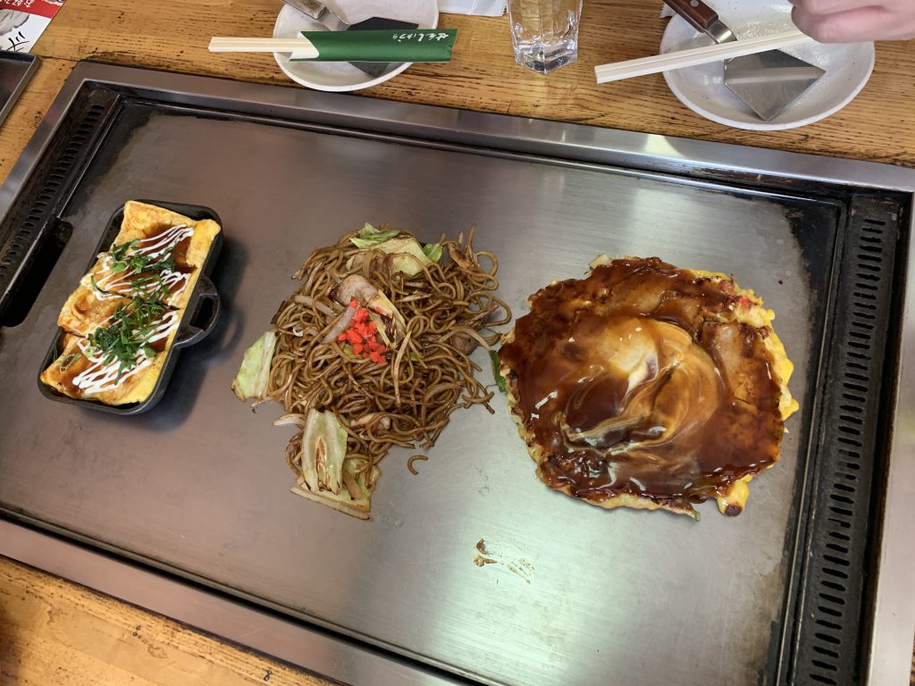 新大阪駅の構内1階のお好み焼き店では、道頓堀やきそばはもちろん、ねぎおこ、どて焼き、どれも美味しいんですが、この頃、行列がすごくて・・