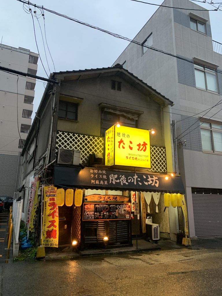 ライス焼き。 お好み焼きにご飯を入れたことはありますが、さてどんな感じなんでしょう。 ドキドキしながら開店直後たずねてみると、にこやかに迎えてくれた2代目社長。 彼が1,2歳ぐらいのときに、お店ができて、「たこ坊」と声を