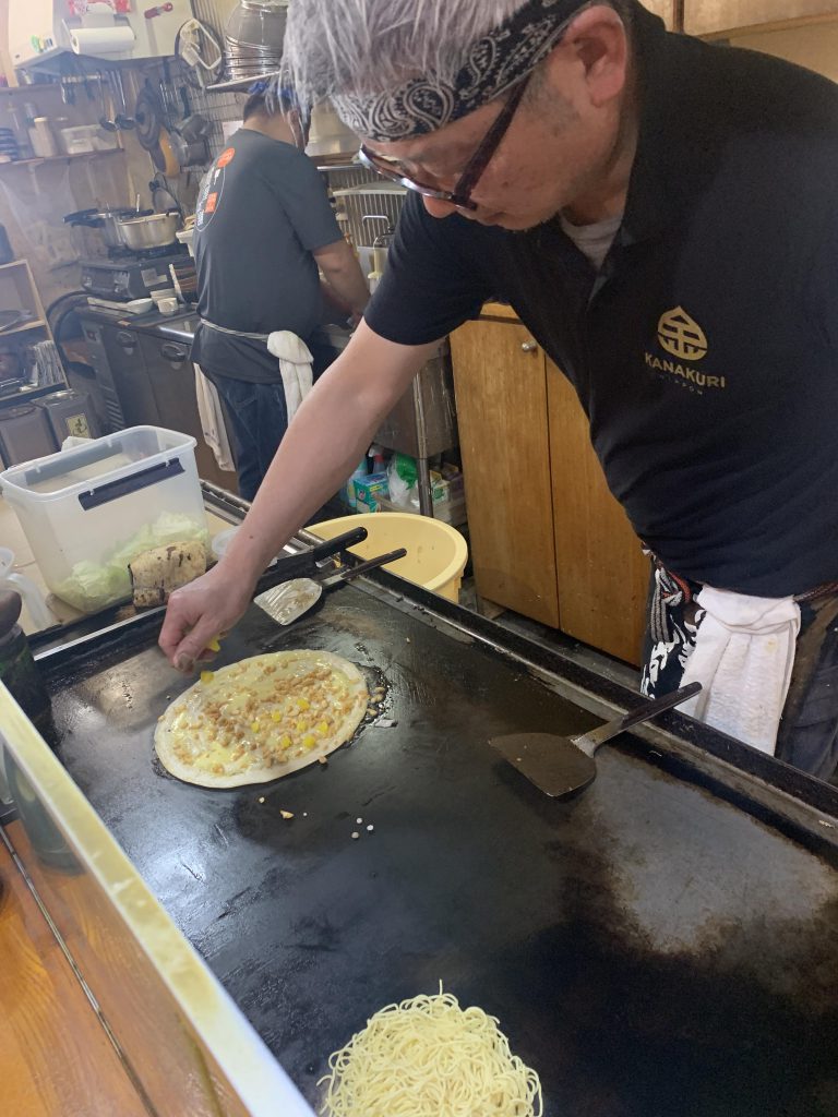 熊本を離れがたく思っていたので、カメラの方ともう一軒回ることになりました。 昭和19年生まれの店主が35歳から始めて、41年、メニューもお好み焼き、ちゃんぽん、ちょぼ焼きとあり、おススメのニンニクちょぼ焼きとちゃんぽんに