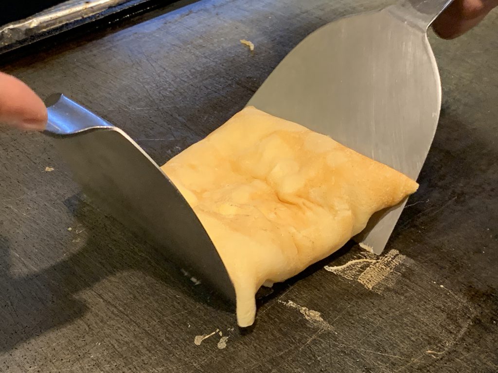 熊本名物探訪の旅、こちらのちょぼ焼きでさらに盛り上がります。 田崎市場にある末広さんでは、クレープの道具をつかって 生地がのばされていました。 けずり節、たくあん、天かすに、肉、野菜、麺、玉子 だけでなく、えび、イカ・・
