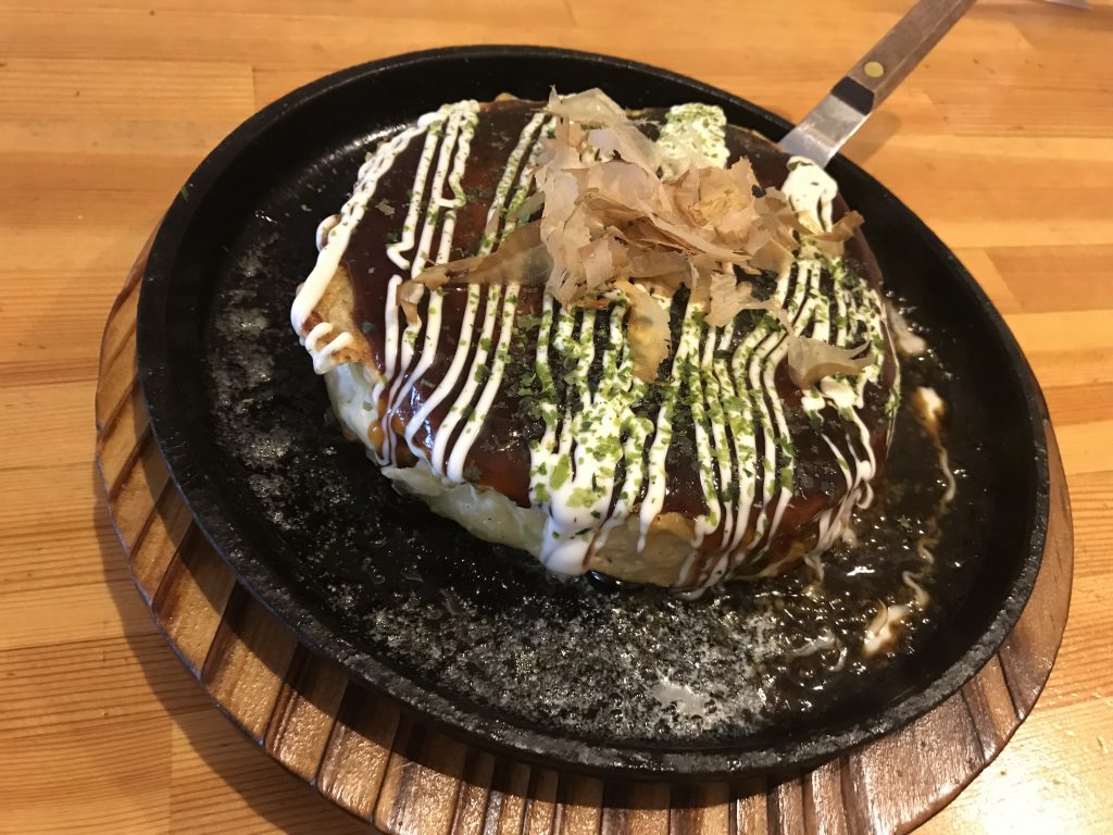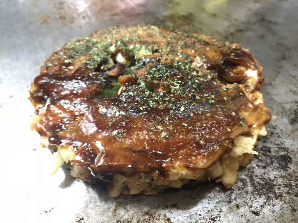 愛媛県松山市三津浜のお好み焼き屋さんでは、トッピングのなかに「牛脂」が。 かしみん焼きや府中焼きもそうですが、牛脂がいい仕事をしてくれます。 隣の常連さんも、ダブルと牛脂で、めっちゃおいしそうでした。