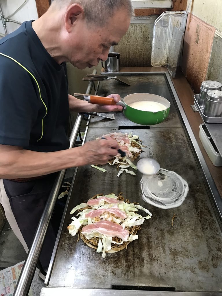 毎年恒例になった「こなもんサミット」、そのなかで、気になっていた三津浜焼きを訪ねました。 船の時代は栄えた港町の老舗の食堂では、小さいときは、三津浜焼きなんて言わへんかったけど・・と ご主人が焼いてくださいました。 ピン