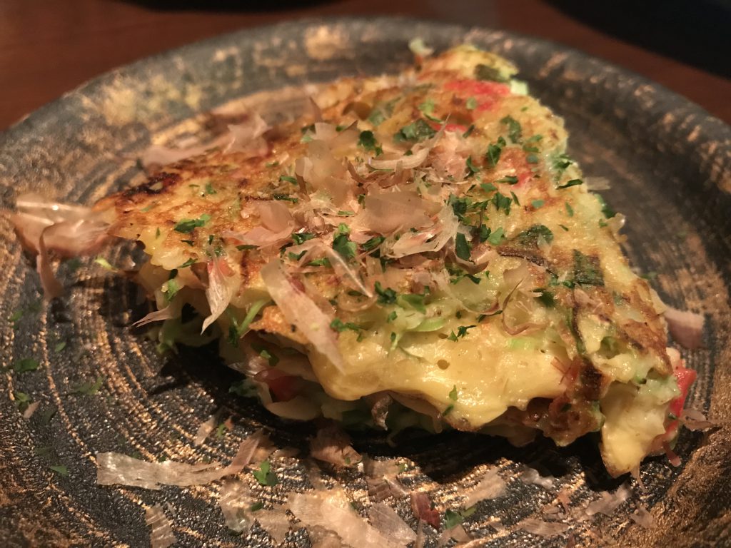 日本との縁も深いオーナーが、特別メニューでお好み焼きを出しているというお店。イカの混ぜ焼きなんですが、ソースとマヨの味はするものの、薄くて、生地のバランスがちょっと物足りなく、厨房に出向いて、教えてあげたい感じでした。