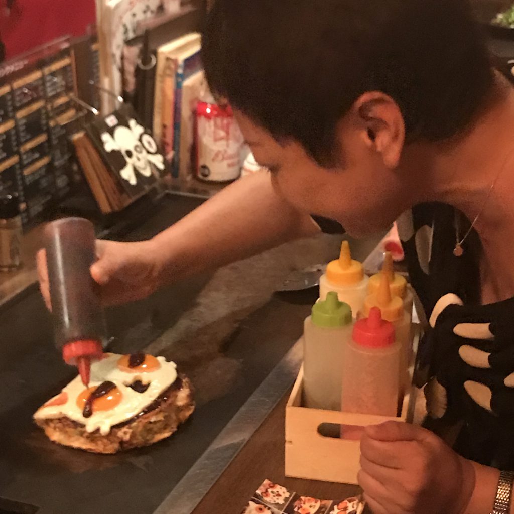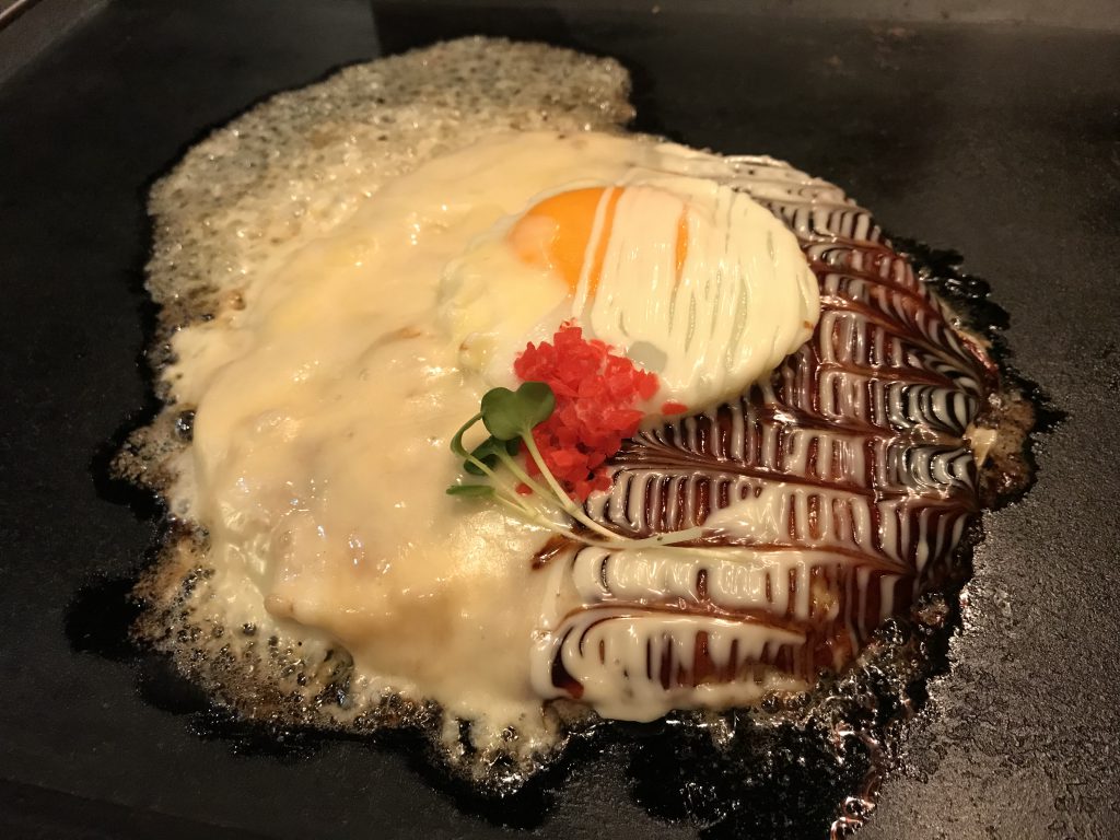 オマールだしの生地も定番になりました。もう10年だそうです。 店主夫妻の雰囲気、人柄も、お店繁盛の大きな要素。 ちょうど、ミシュラン2019発表のパーティ前で、おいしいのを焼いてもらいました。