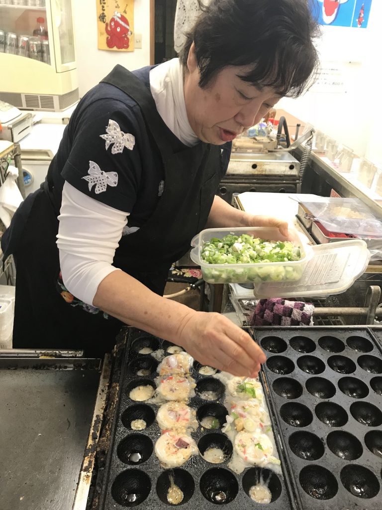 東京木場で、偶然にも、大阪らしいお店発見。 てるちゃんこと平岡輝子さんは、天王寺出身。 60歳からこの地で、たこ焼き店を開業し、地元の根付いて10年たちました。 愛嬌たっぷりてるちゃんのチャーミングなスマイルに出会えてよ