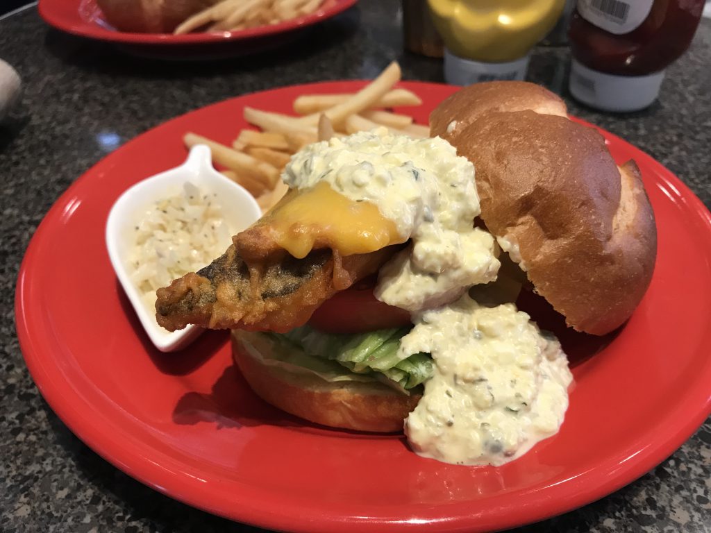 京都駅では、いつもブルディガラを利用しますが、満席だったので、隣のお店に。 クラフトビール、フィッシュ&チップスと、ハンバーガーがメインで、とくにフィッシュバーガー美味しかったです。 手で持って食べる、かぶりつく幸せ、は