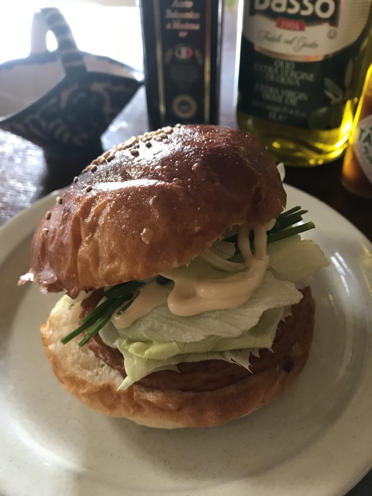 試作した中で、意外な発見が、平天バーガーのおいしさ。 バンズを軽くトーストして、だしマヨ&からし、レタスとノビルにレモンを絞りました。 レベル高い仕上がりは、やっぱりエスケールのバンズだからでしょうか! ちょっと