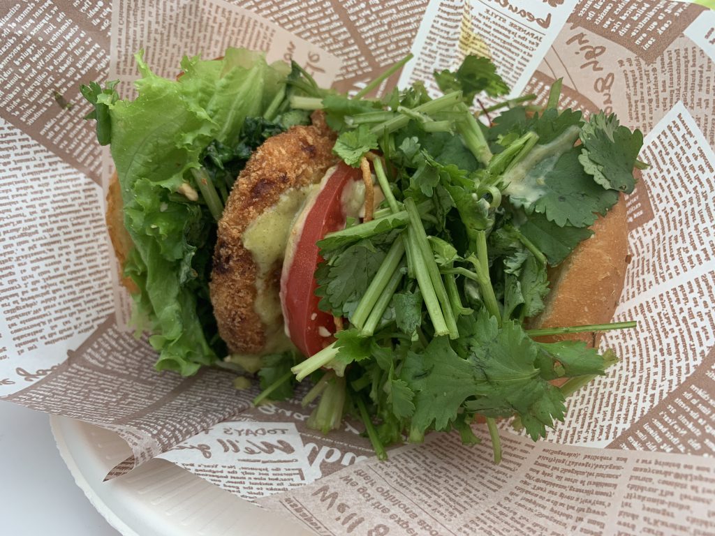お昼を食べてないことに気づき、近所のホットサンド店へ。 コルカタ出身のインド人が、パンを鉄板で焼いて、おすすめのテリヤキチキンをはさんでくれました。 中身が冷たいままだったので、どんな感じになるのかな、と思っていたら、意
