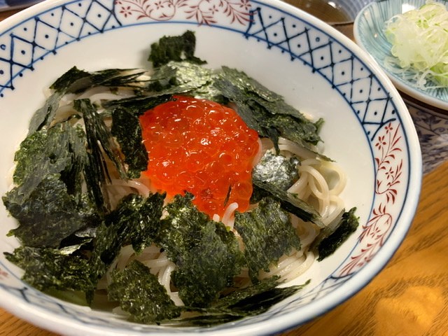 運よく、久慈まめぶ部屋の谷地さんファミリーと再会できました。 時価のお蕎麦に松茸を見つけたので、お願いしたら、もう時期が終わっていたので、すじこで我慢です。 今年はB-1もなく、1年ぶりにたくさんお話させていただきました