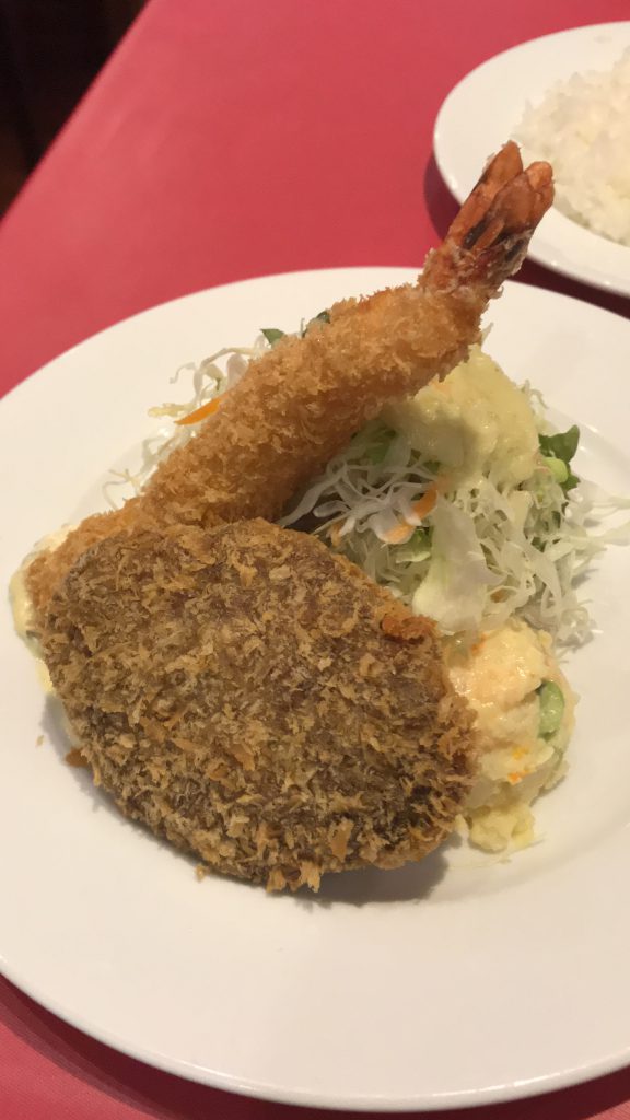 祖母も好きだったはり重さんの海老フライ以降、海老フライを意識的に食べています。 東京にも人気の洋食店がありますが、こちらのパン粉は標準の大きさでした。 メンチカツのジューシー感もよく、テーブルにユニオンの中濃ソースがおい