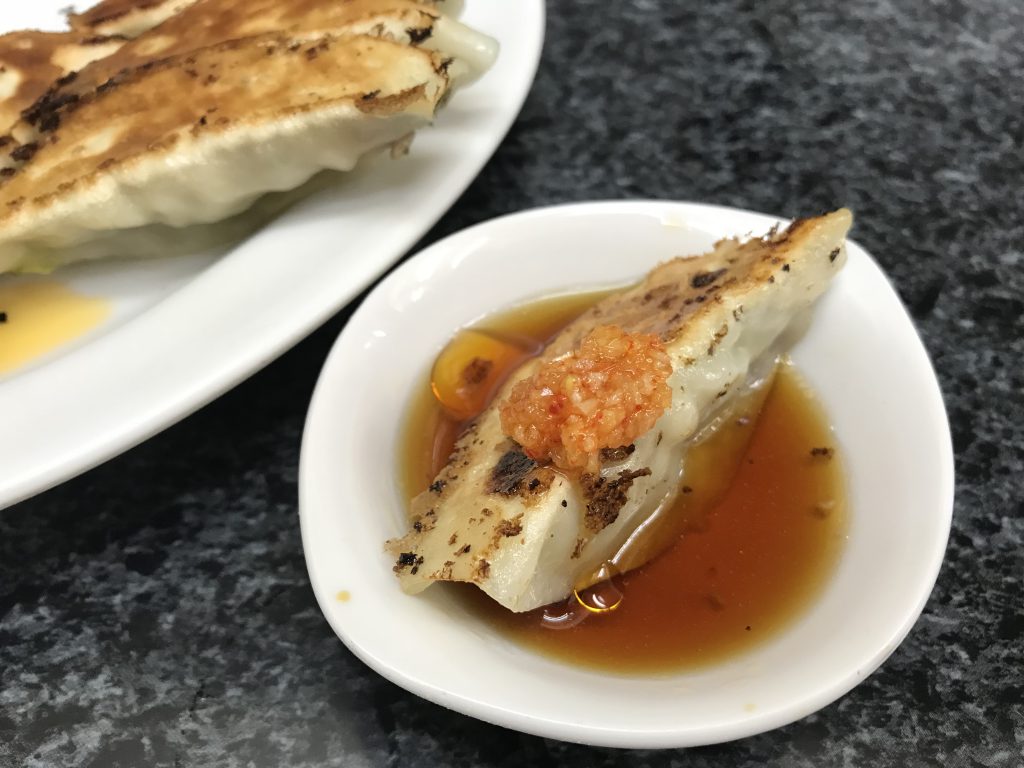 益生の赤だし味噌のサンジルシ工場へおじゃました帰りに、桑名で焼はまぐり、 というのは昔のことで、いまはこちらの餃子がおススメです。 メニューは、この餃子のみ。その潔さというか、徹底ぶりに感心します。 お客さんは次々と店内