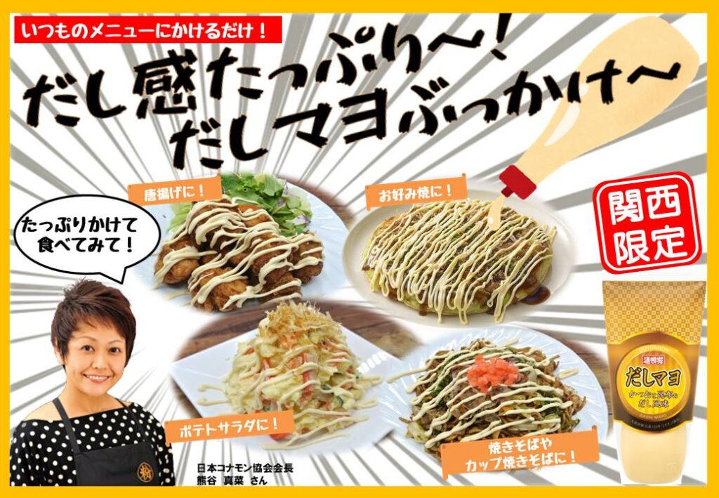 2015年、道頓堀開削400年を記念して、キユーピーさんから登場した「だしマヨ」。おかげさまで、新発売から6年目にはいりました。 関西限定発売ですが、おみやげにも御利用いただいてるそうで、嬉しいです。 こちらのPOPは、