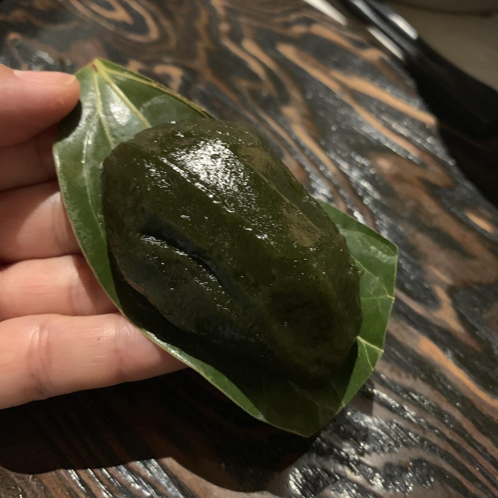 けせん団子をまとめ買いする人を見て、私も買いました。 夜の宴会で、あけてみると、ニッキの香りがほんのりついた、なんとも爽やかなよもぎだんごではありませんか。 日本というより、アジアの風が吹くこの街ならではの、郷土菓子に出