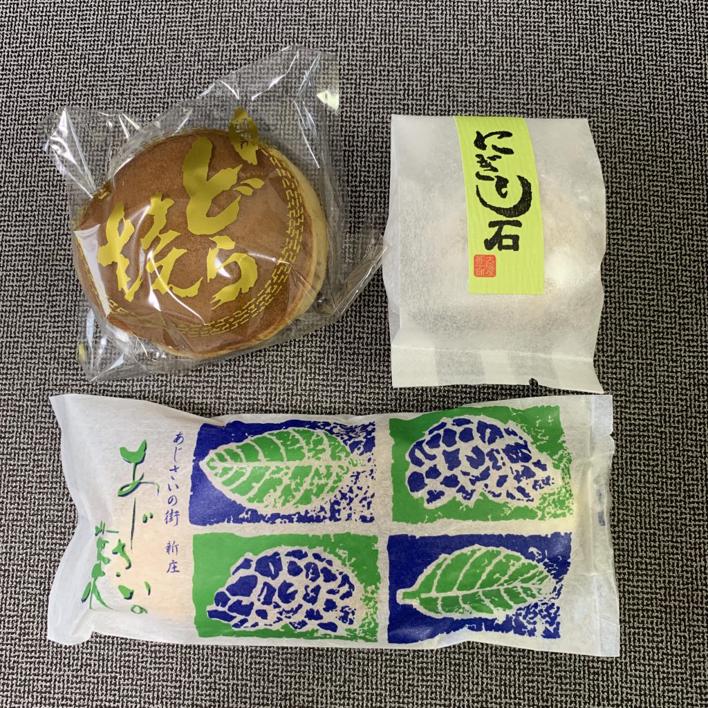 鳥もつラーメンの名店のお迎えが、大阪屋さん。 気になってはいってみると、にぎり石、あじさいの栞など、面白いネーミングのお菓子がいっぱい。 三代目奥さんによると、初代は酒田でお店をやっていたそうで、大阪屋、ということは北前