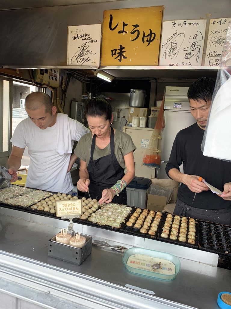 明治時代、どんどん焼きの絵を表してくれた、大森の貝塚発見のE・S・モース博士。そのゆかりの地は海苔の問屋さんも多く、風情が残っています。そこで見つけたたこ焼き屋さん。若い夫婦が仲良く営業中。試行錯誤の毎日だそうですが、応