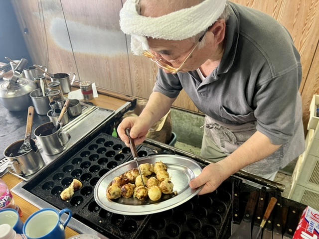 上方お好み焼たこ焼協同組合のこども食堂へ! リピート山中さんの生ライブで昨年以上に大盛況でした。タコも特大6g、ホンマにおいしい食べ納めです‼︎ #100年フード #たこ焼き #上方お好み焼たこ焼協同組合 #リピー