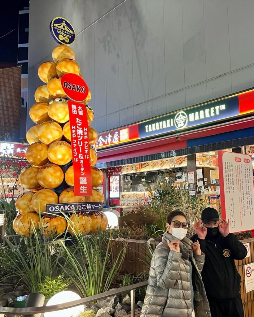 おそらくオンリーワンの焼き技と言っても過言ではない、天五中崎商店街のうまい屋さん。Netflixで見たというオーストラリアからのお客さんが私を見つけてくれて記念撮影❣️ #konamon #日本コナモン協会 #