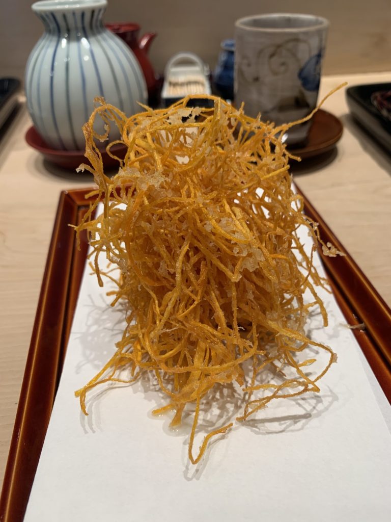 敬愛する近藤さんのお店に、なぜか毎月のようにおじゃましています。 でも回を重ねるごとに、美味しさ、技の奥深さを痛感! 琵琶湖の山椒稚鮎、聖護院なすの醤油がけ、白アスパラも、グリーンとは違う風味と食感にうなります。