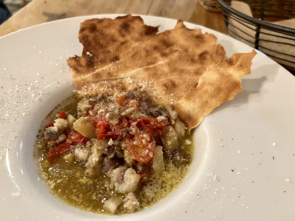 ジビエの季節到来、で島本ジビエさんへ。猪の胃のサラダ、鹿肉の煮込み、アナグマと採れたてポルチーニのスープなど、自家製パンで最後までふき取っていただきました!
