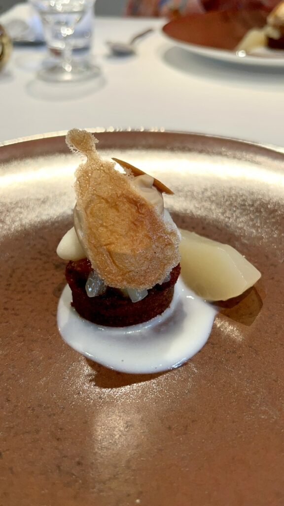 注目の京都フレンチ、モトイさんへ。大正期のお屋敷を改装した素敵な空間で、ヌーヴェルフレンチシノワとも言える、素晴らしいお料理の数々。十勝ハーブ牛のロティは59タイプの野菜に囲まれています。デザートだけでも3種類、すあまも