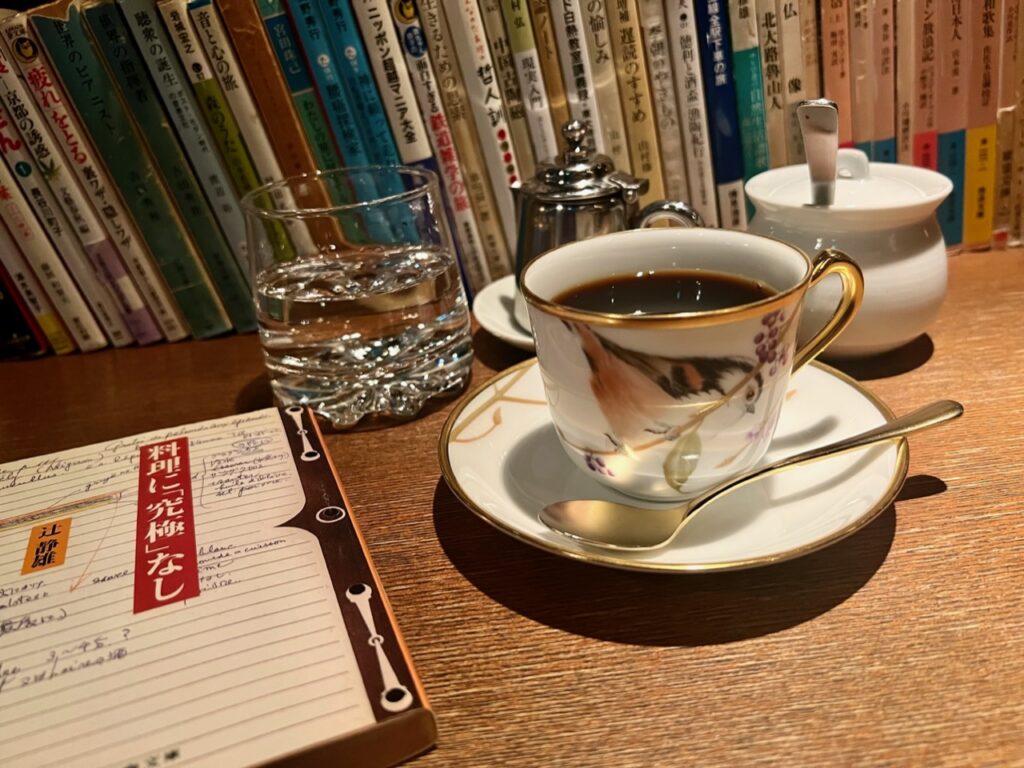 今年初の文化庁訪問前に、素敵な喫茶店発見。置いてある本が師匠の研究室みたいでめっちゃ寛いでしまいました。梅棹先生と辻静雄さんの対談を読みながら「こいめ」ホットとチーズケーキ。すっかり文化人気分で! #café #喫茶
