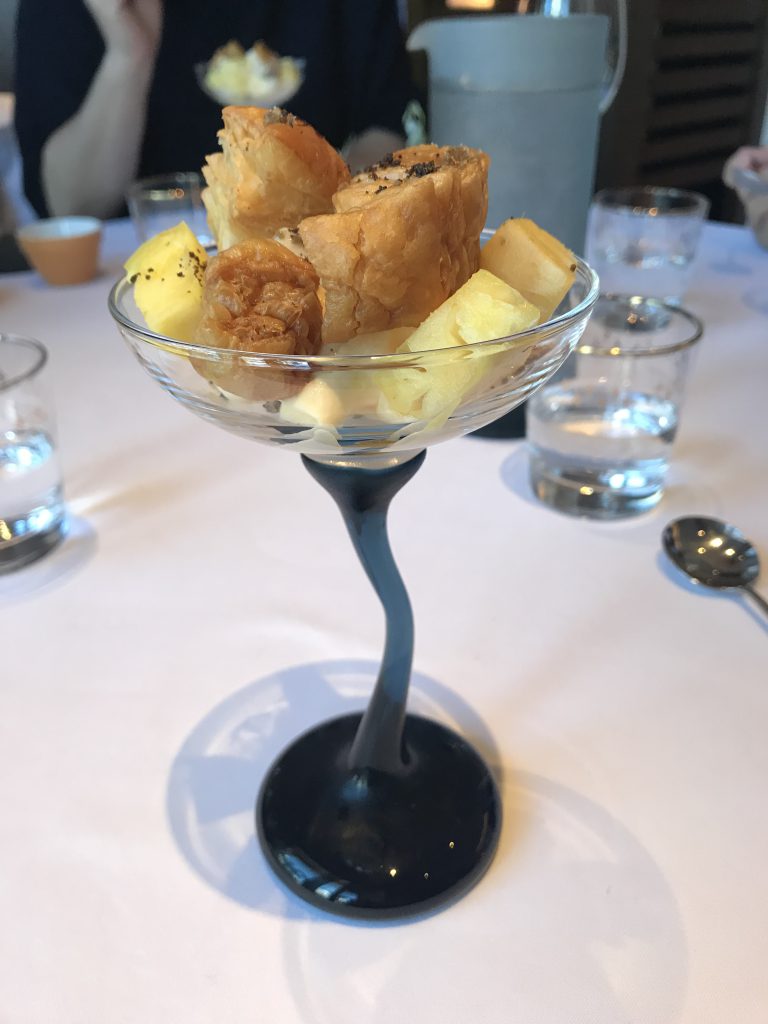 食学会の情報交換会では、雲海酒造さんや、澳オリーブさんがいろいろ持ってきてくださいました。 マグロも、オリーブオイルをつけて、醤油をつけると、印象がかわります。 これに木挽ブルーが、嬉しい合わせ技です。